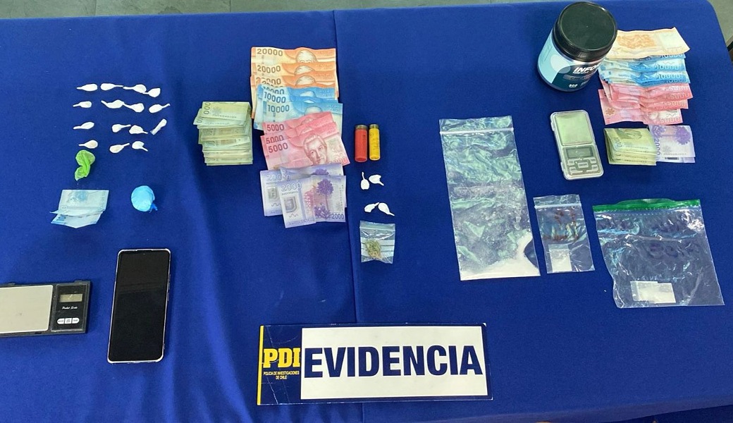 Durante el procedimiento policial se incautaron 25,93 gramos de clorhidrato de cocaína distribuidos en 21 contenedores, 1,49 gramos de cannabis en tres contenedores, una balanza digital, cinco teléfonos celulares, $329 mil pesos en dinero en efectivo y munición correspondiente a cartuchos calibre 12 y 20, además de otros elementos asociados a la actividad ilícita.